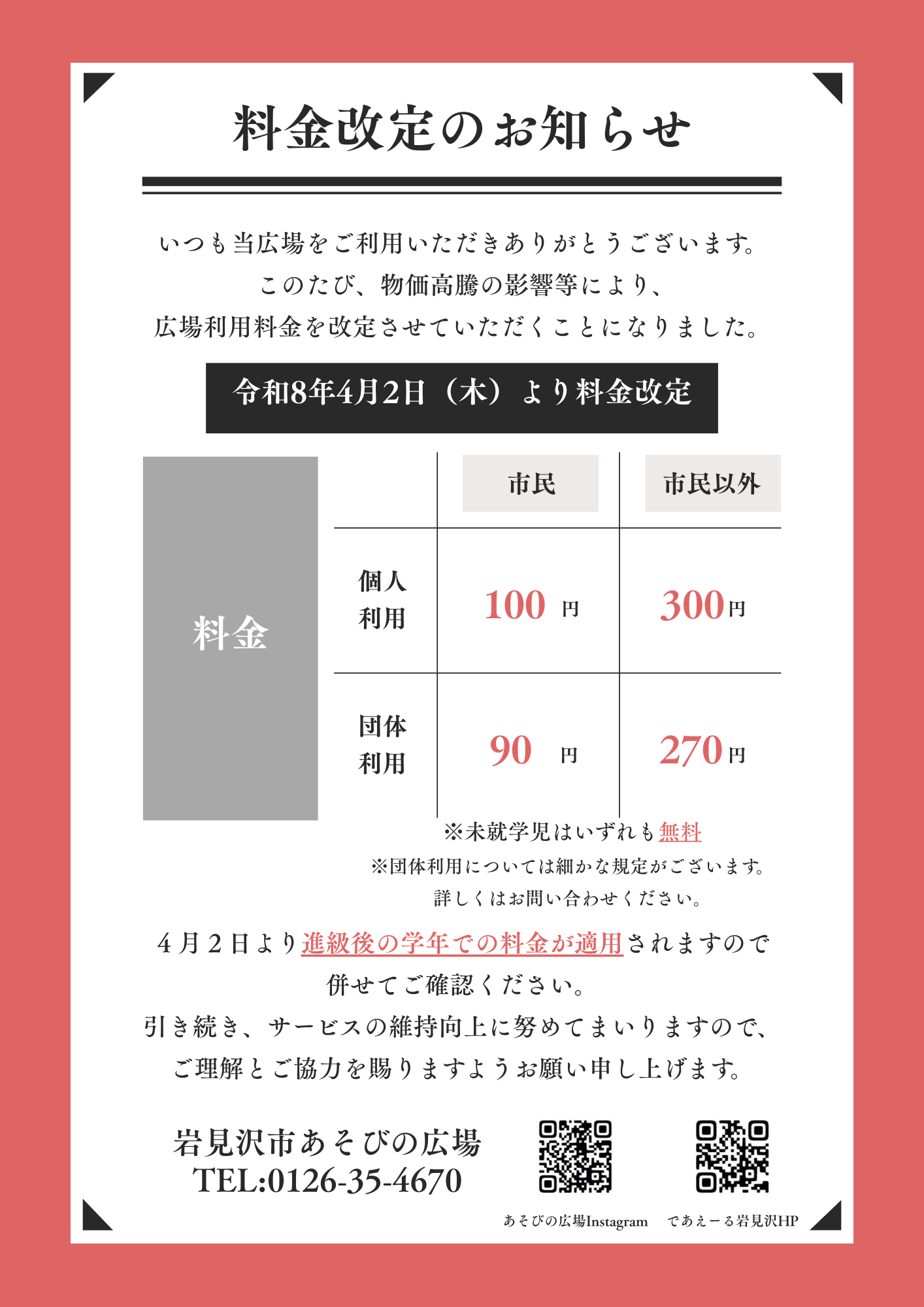 - 1回100円(未就学児は無料)
